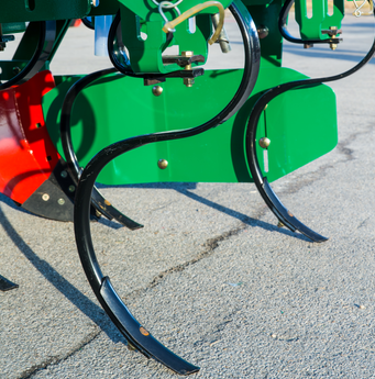 小弹性齿由S弧形弹性铲柄与双尖松土铲组成,其主要用来疏松土壤,并将薯垄两边的杂草除掉,其深度可根据实际情况进行调节。
